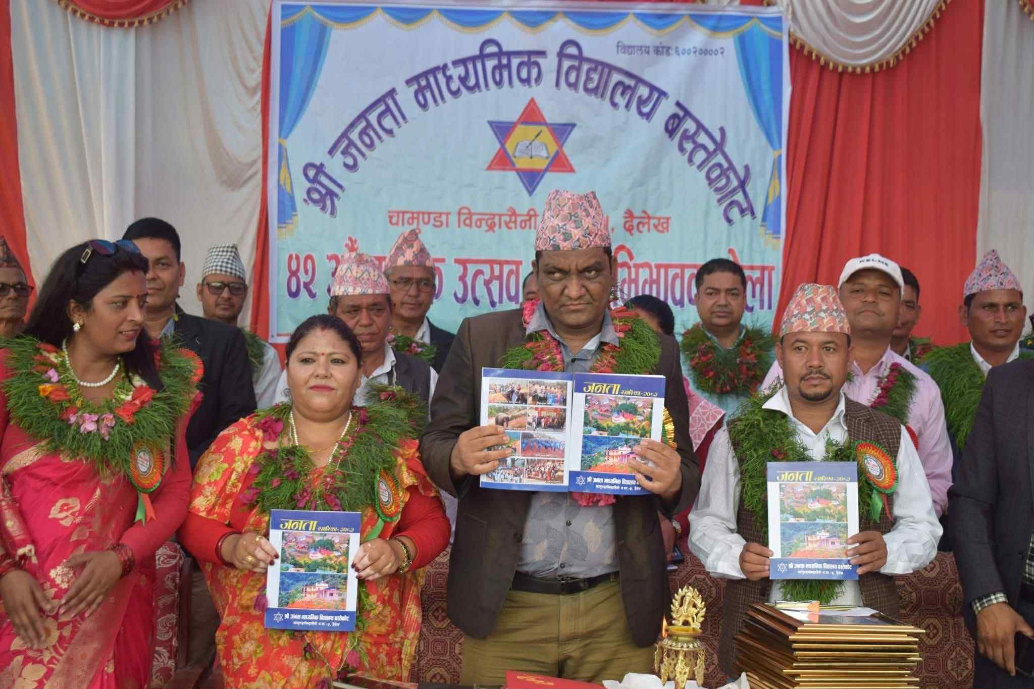 पञ्चकोशी संवाददाता दैलेख । चामुण्डा बिन्द्रासैनी  नगरपालिका–५, बस्तेकोटमा अवस्थित श्री जनता माध्यमिक विद्यालय  ४२औं वार्षिकोत्सव तथा अभिभावक भेला भव्य रूपमा सम्पन्न भएको छ।