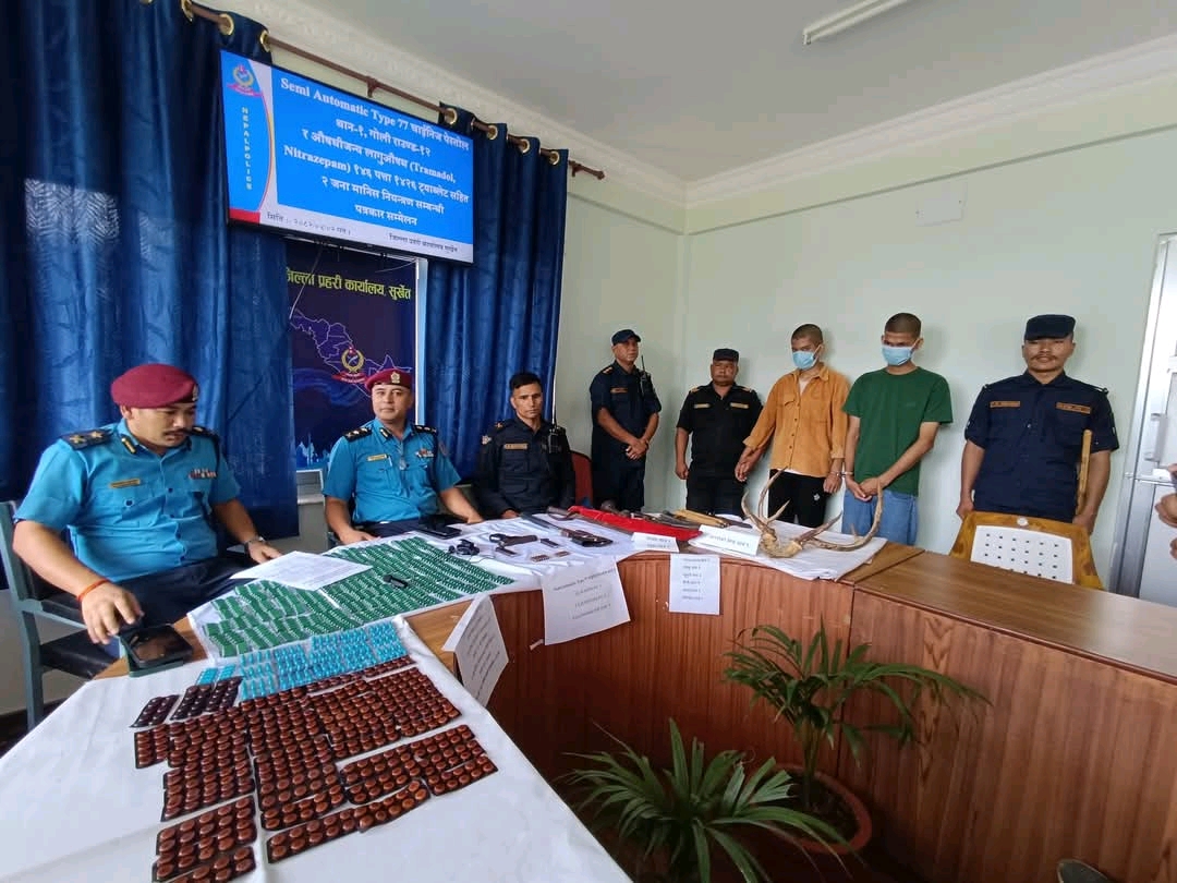 उनका अनुसार, उनीहरूसँग लागुऔषध तथा हतियार रहेको सूचनाका आधारमा प्रहरी टोली खटिएको थियो । उनीहरू बस्ने कोठामा एक थाना सेमिअटोमेटिक चाइनिज पेस्तोल, पेस्तोलमा लाग्ने १२ राउन्ड गोली, औषधिजन्य लागुऔषध १४ सय २६ ट्याब्लेट, विभिन्न आकारका खुकुरी चार थान, चक्कु दुई थान, बन्चरो एक थान, कैँची एक थान, नाइनस्टिक एक थान बरामद भएको छ ।